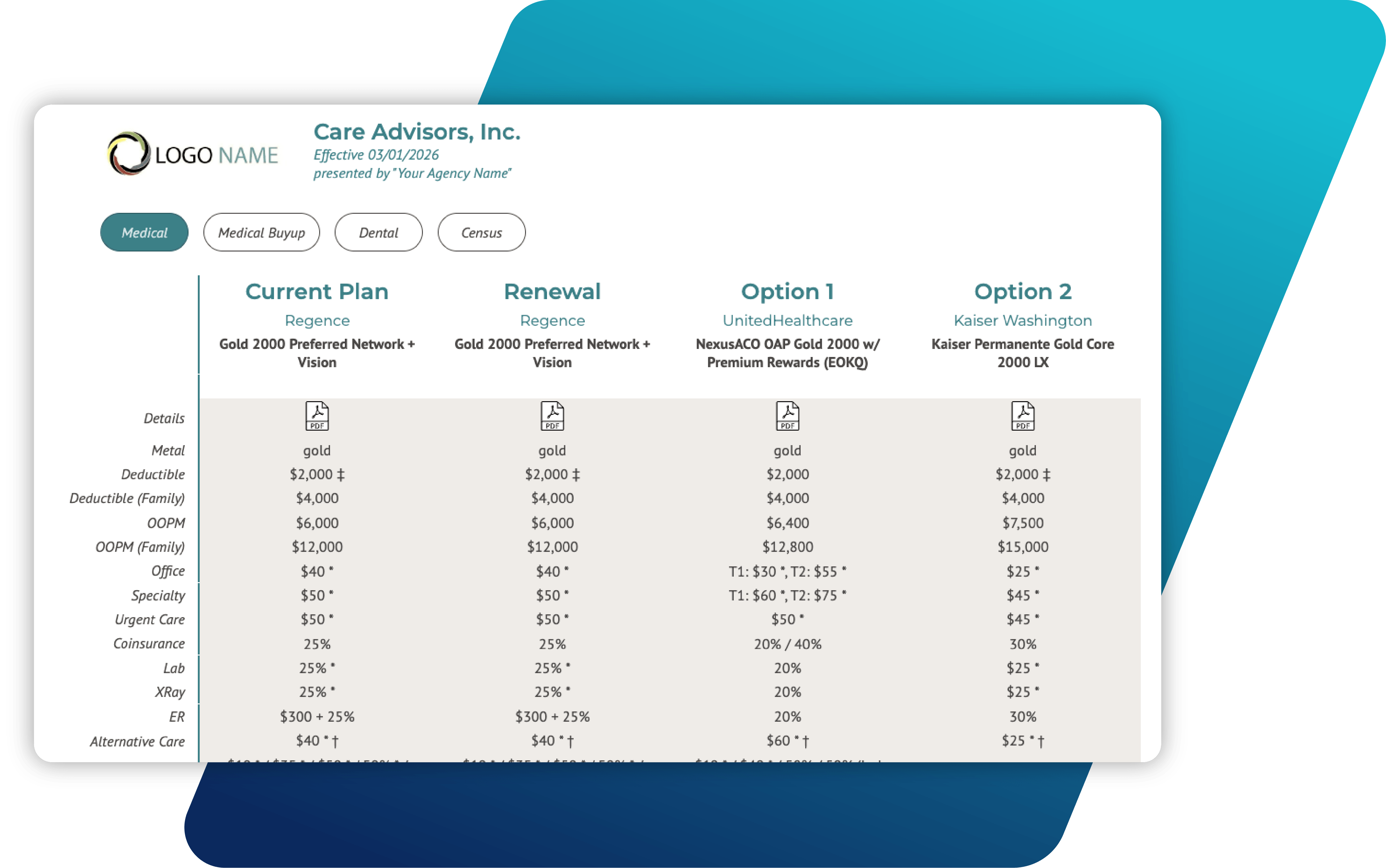 Quotes from multiple carriers are generated, compared, and bundled in one place. Side-by-side presentations are produced in minutes. Duplicate data entry is eliminated, errors are reduced, and you keep deals moving without costly delays.