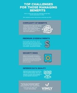 Administering benefits is complicated. Enrollment and renewals. Billing and payment. Accurate data management. Compliance and security. Whether you’re an Association Health Plan, School District, or Trust, the challenges can be daunting. But ignoring them can be more costly than you think. In this infographic, we present the top challenges for those managing benefits. Do any of these sound familiar?